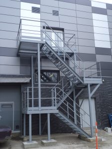 Наша компания изготавливает и осуществляет профессиональный монтаж лестниц и ограждений согласно всем требованием пожарной безопасности.