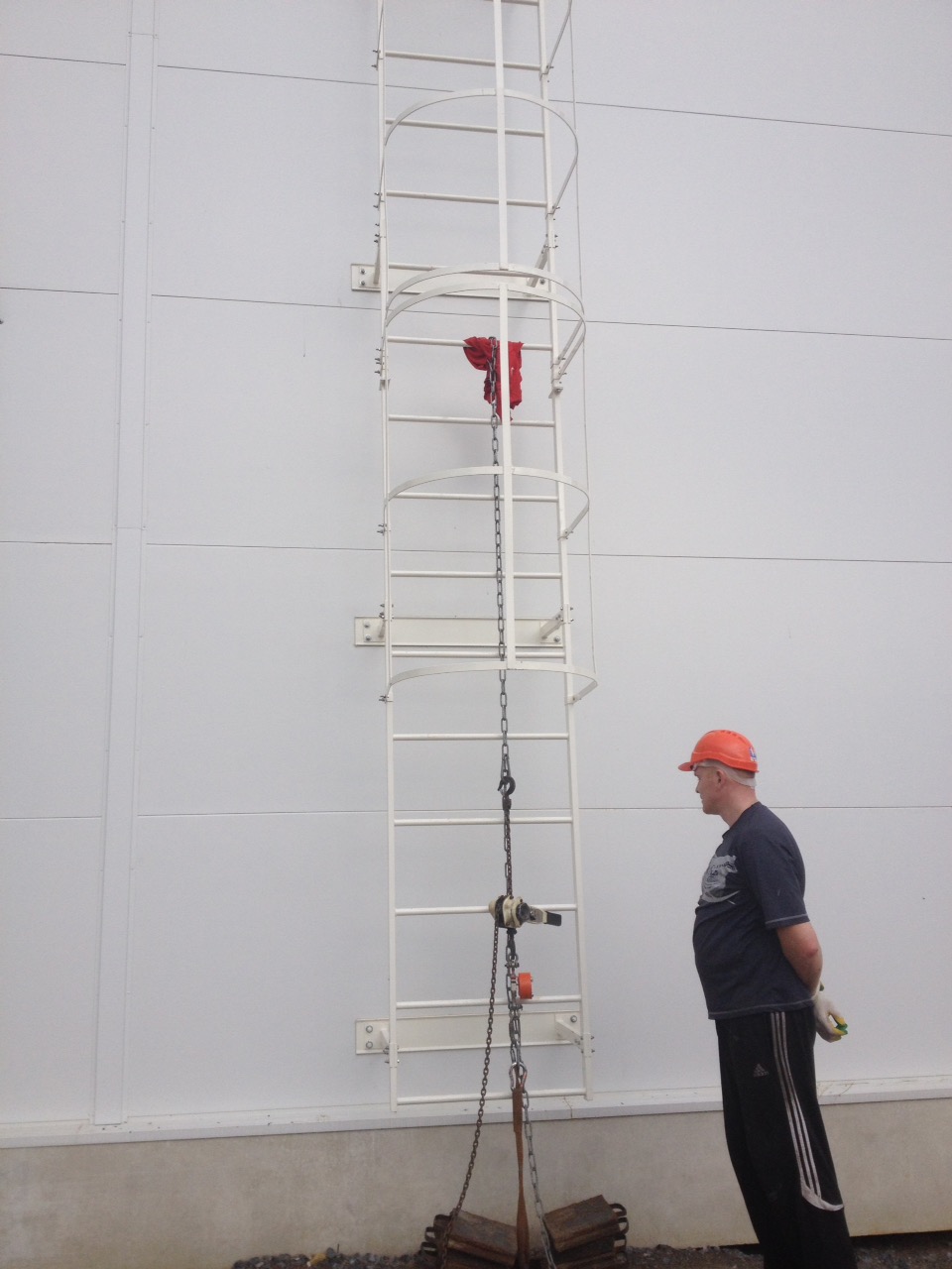 По завершению монтажа металлическая лестница проходит испытание на прочность, по окончанию которого выдается протокол испытаний, означающий, что данная конструкция отвечаем всем требованиям о нормам противопожарной безопасности.